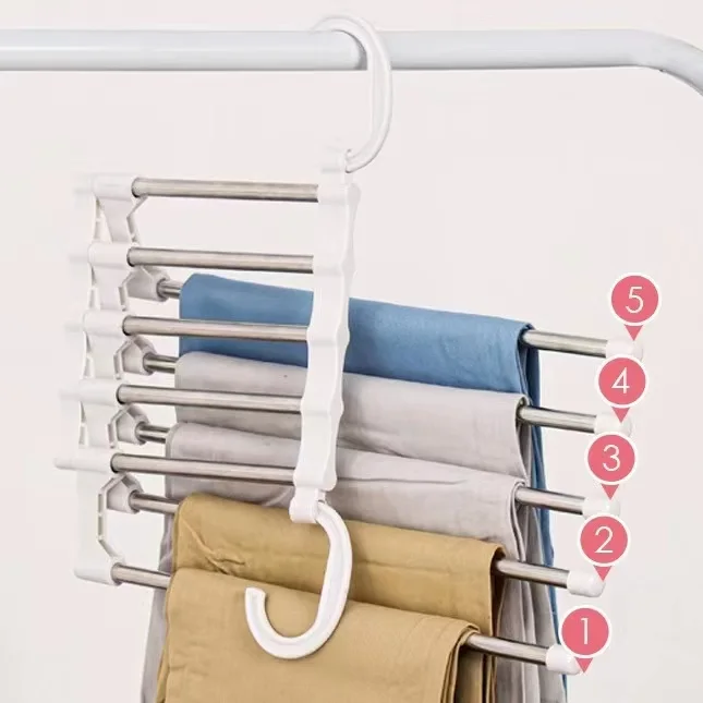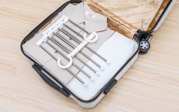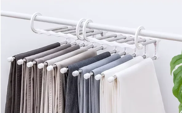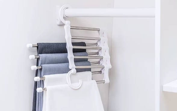 Suspendez-le verticalement : les 5 barres restent alignées et réduisent l’encombrement jusqu’à 80%. En mode horizontal, vous avez un accès rapide à chaque vêtement.