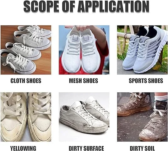 - Effet visible en 3–5 min sur bords et semelles blancs.
