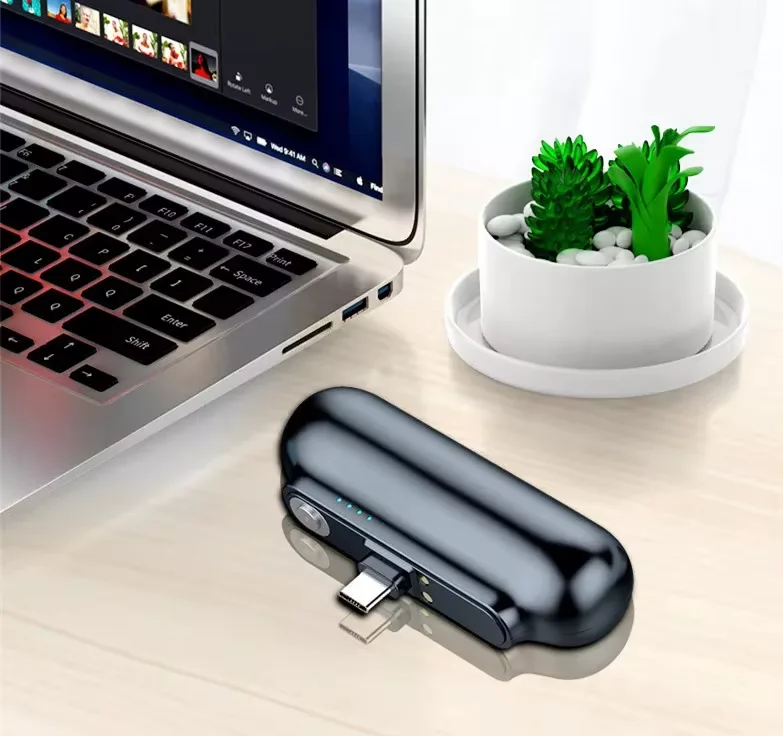 Via le port USB-C. Les LED indiquent le niveau de batterie restant.