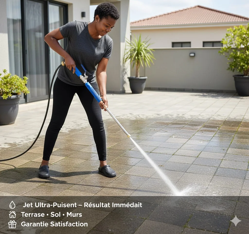 Évitez de diriger le jet haute pression vers des personnes, des animaux ou des surfaces fragiles (vitres fines, peinture fraîche).